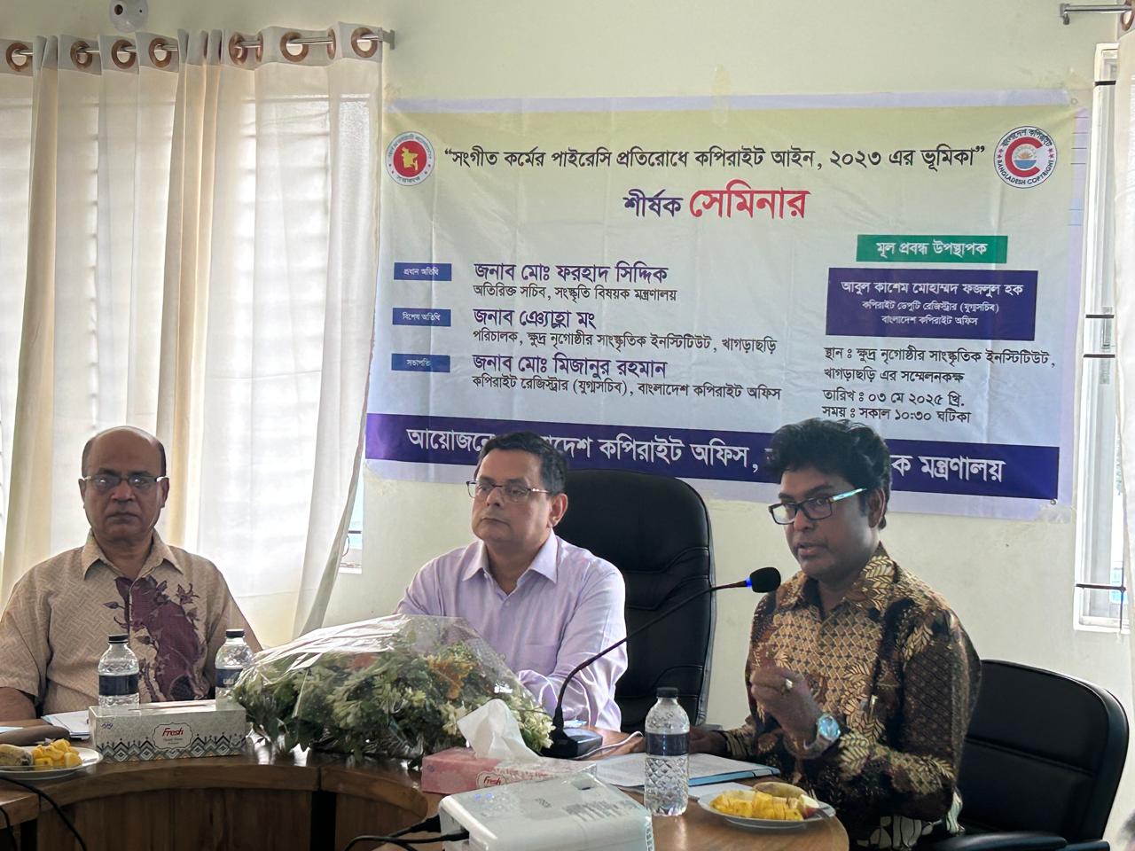 বাংলাদেশ কপিরাইট অফিস এর উদ্যোগে “ সংগীত কর্মের পাইরেসি প্রতিরোধে কপিরাইট আইন ২০২৩ এর ভূমিকা” -শীর্ষক সেমিনার আয়োজন